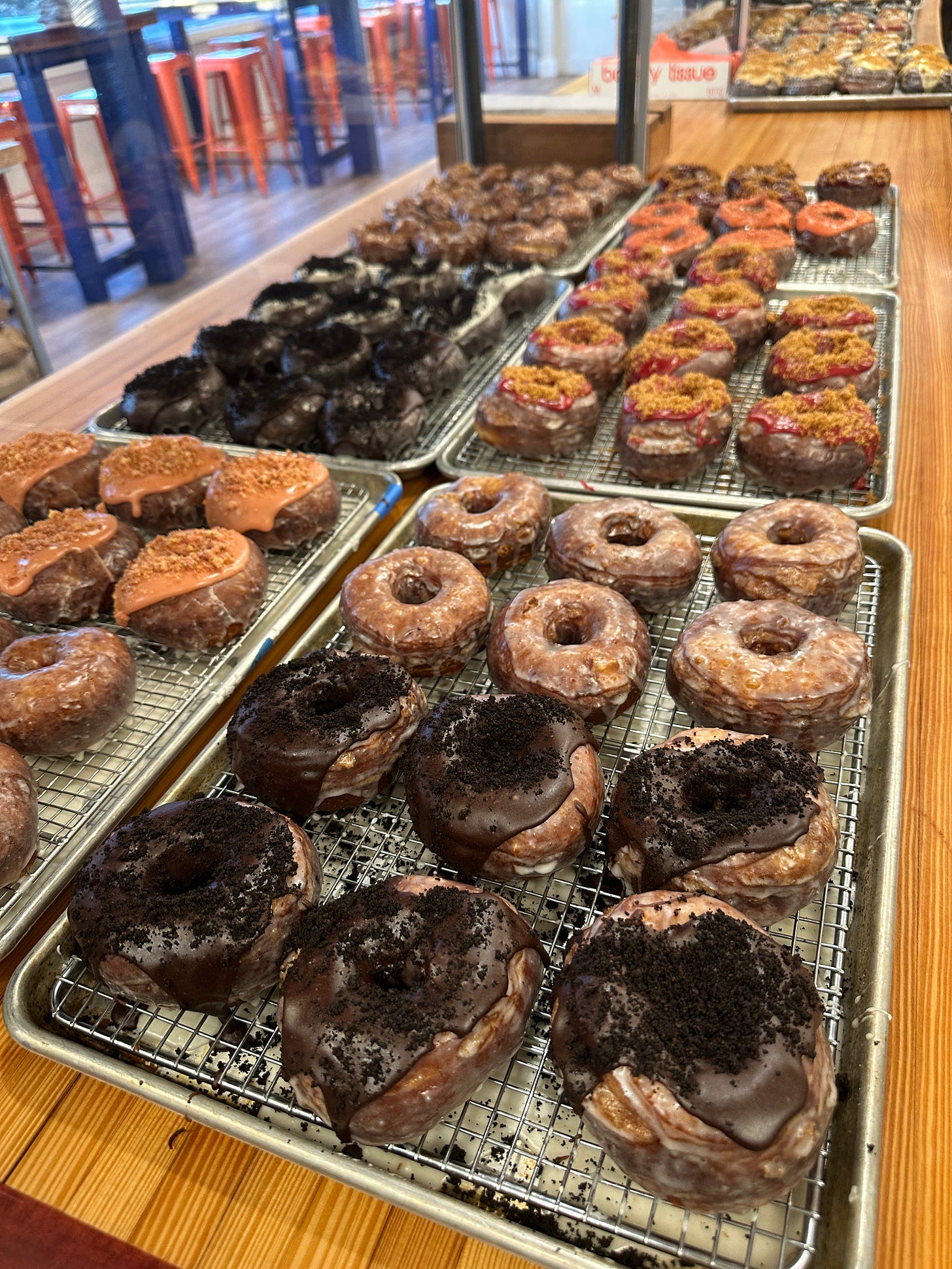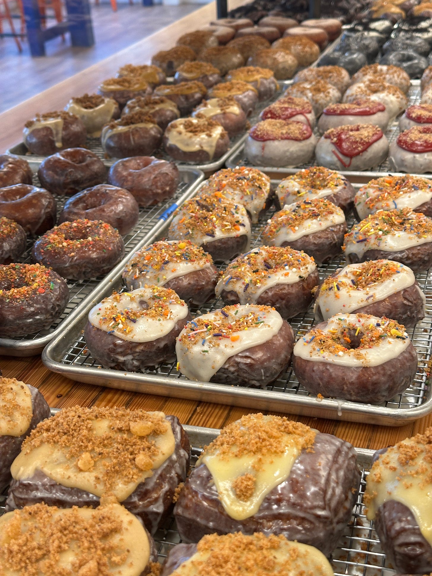 The slightly later opening time gives us a little breathing room. This way Alex doesn’t have to try and get the case filled by 7am and then wonder why no one is walking in the door. Owning your own business often means a lot of stress and fewer benefits, so we’re trying to change the balance a bit. A doughnut shop should be a happy place and the goal this year is to give ourselves a bit of grace to make life better on both sides of the counter.